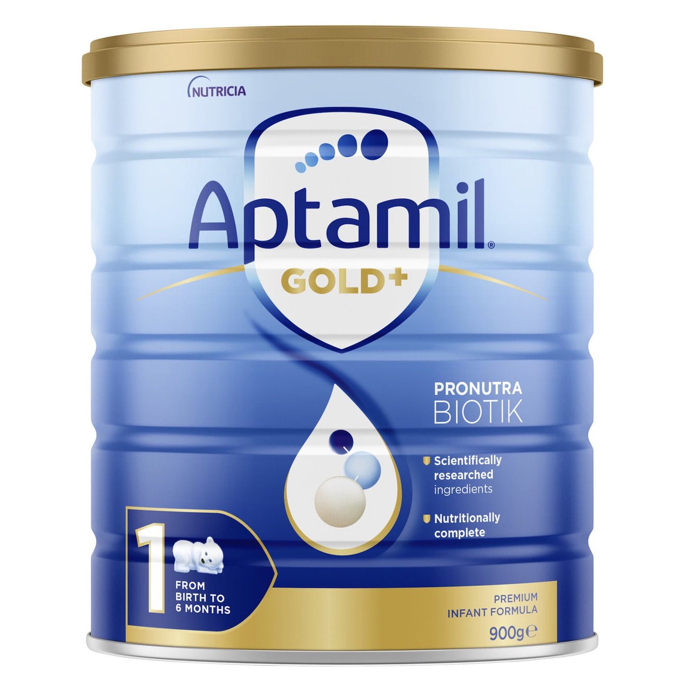 Aptamil Gold+ 1 Infant Formula is scientifically developed to provide complete nutrition for babies from birth to 6 months. Features Nutricia’s patented Pronutra+ blend with prebiotics (GOS/FOS) to support healthy gut flora, DHA and ARA for brain and eye development, nucleotides for immune support, and iron for cognitive development. Based on over 50 years of breast milk research by Nutricia. Manufactured in New Zealand.